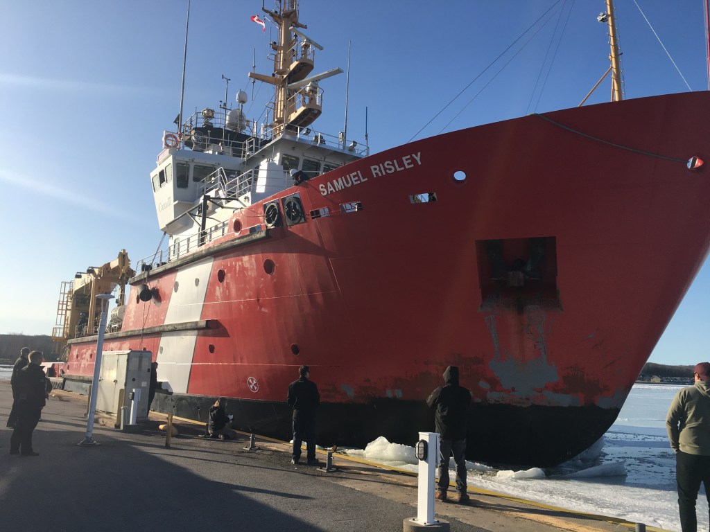 Occasionally however the ice must be manually broken to facilitate commerce and one of my very favourite winter activities is to watch the ice breakers. Their job is to cut a trail for the bulk carrier ships that occasionally enter Midland to deliver grain to the waterfront mill. Many locals gather at the town dock to watch this event and check out the ships.