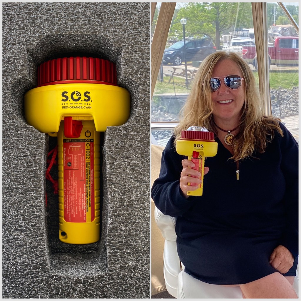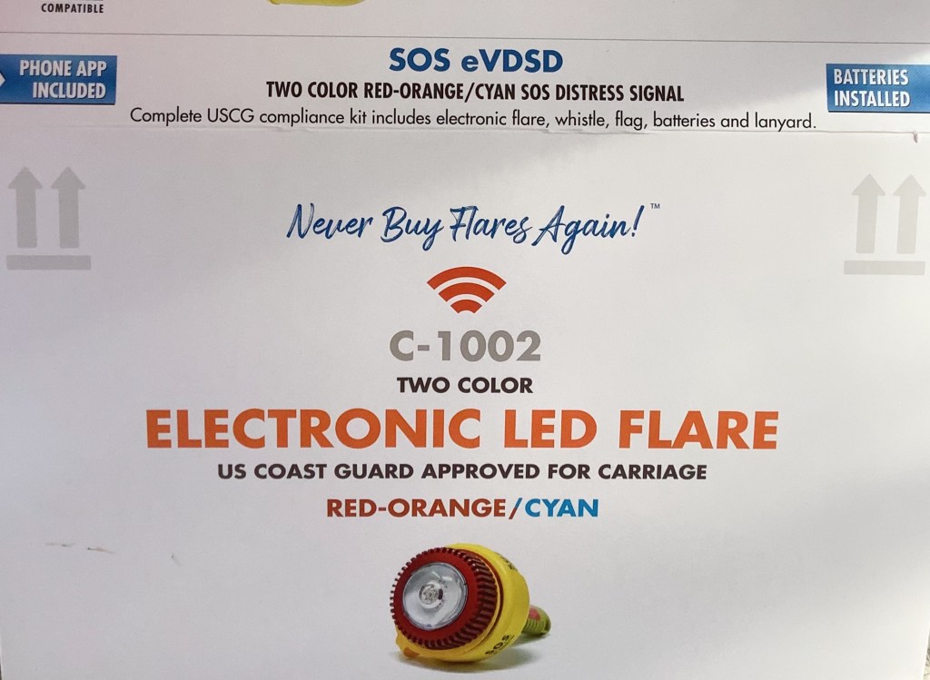 Although at a higher price than any flare (currently about $419 on Amazon which my marina price matched), the unit would replace all but one smoke flare. It comes with 8 – C123a lithium batteries that will need replacing in about 10 years (approx cost per Amazon – $50 for 8). Sirius says the device itself should last a lifetime if properly cared for which may make it more cost efficient than standard flares, depending on the size of your vessel.