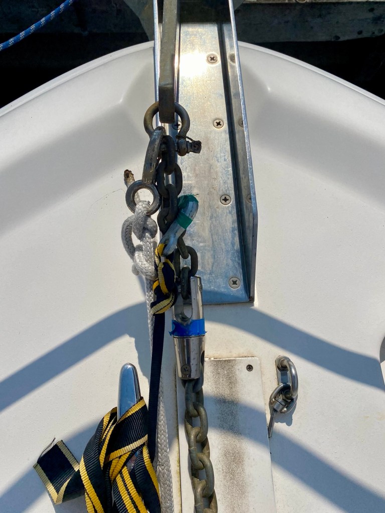 4. Anchoring: between our anchor and chain we installed 5 chain links and a swivel head. This helps prevent the chain from twisting and also alleviates some tension on the anchor as we swing.