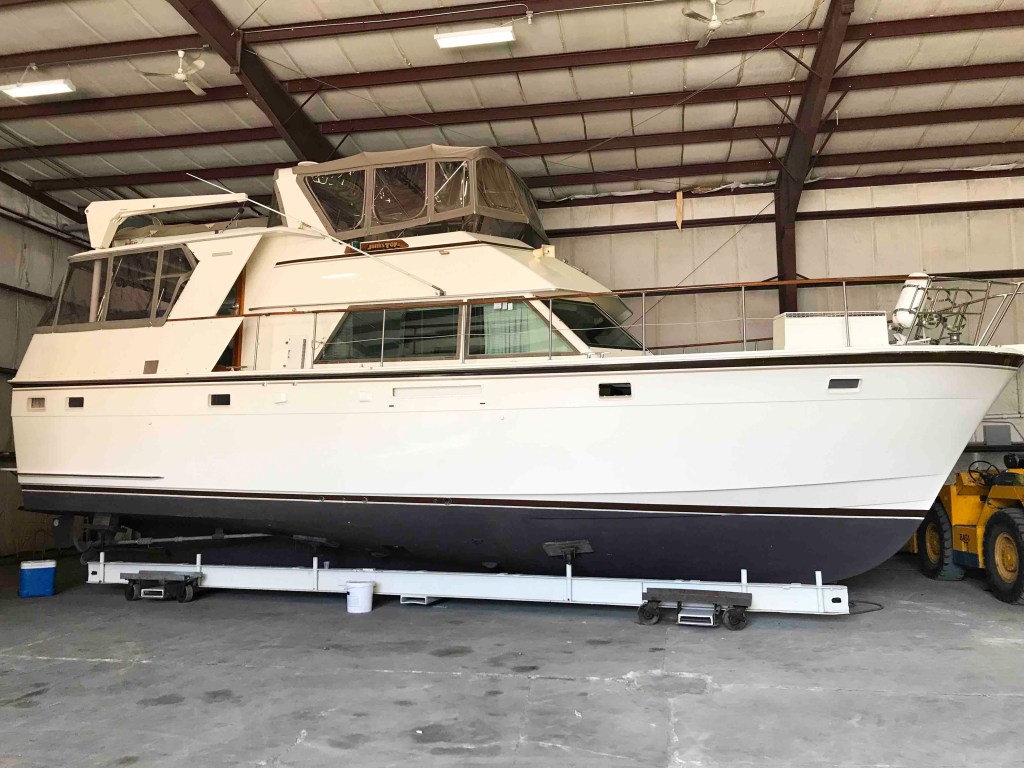 A little background on Hatteras Yachts: long recognized as quality built, comfortable cruising vessels capable of tackling the big seas without much fuss. Elegant interiors, spacious bridge designs, luxury accommodations and one of the first companies that, when founded in 1959, began producing fiberglas hulls at a time when other yacht builders were still pumping out the “woodies”. Ahead of their competition these beauties were built to withstand both the test of time and the seas.