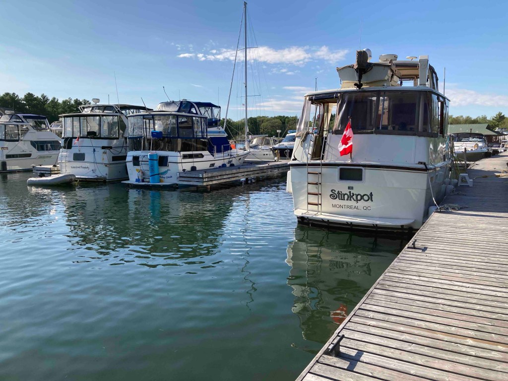Their first Canadian stop was Hilton Beach, Algoma, where Stinkpot was cleared by Canada Customs, officially becoming a Canadian vessel! However their welcome was short lived as a major storm quickly descended right after their arrival, downing hydro lines and knocking out local power. They sat at the helm throughout, terrified the docks would be ripped out as the storm wrecked havoc. There was a tornado sighting reported within a short distance away and the marina docks did sustain significant damage from the high winds and current. It was quite the welcome to Canada! From there they continued through the North Channel and onto Georgian Bay, luckily without any further incidents!